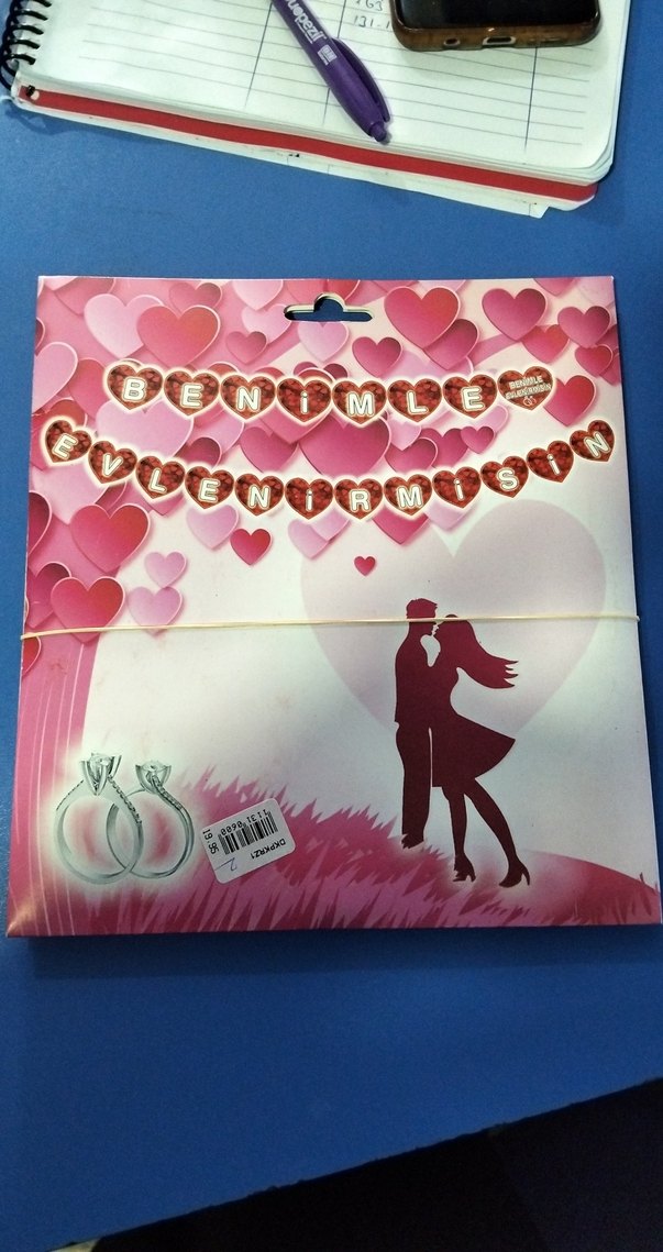 Renkli pembe kalp desenli, 'Benimle Evlenir Misin' yazılı evlenme teklifi için süsleme bannerı.