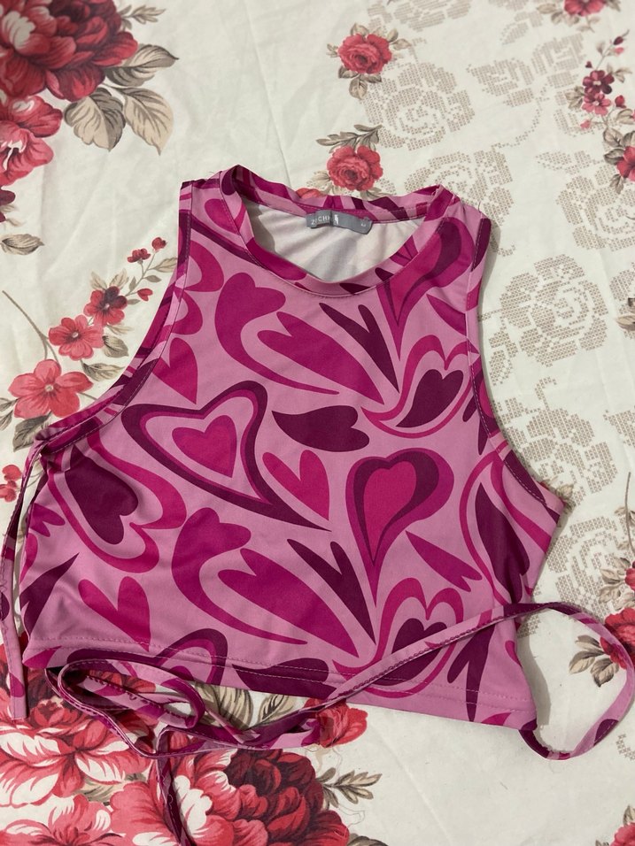 baskılı kalp desenli pembe mini atlet.Yuvarlak yaka ve kısa kesim ile günlük kullanıma uygun.