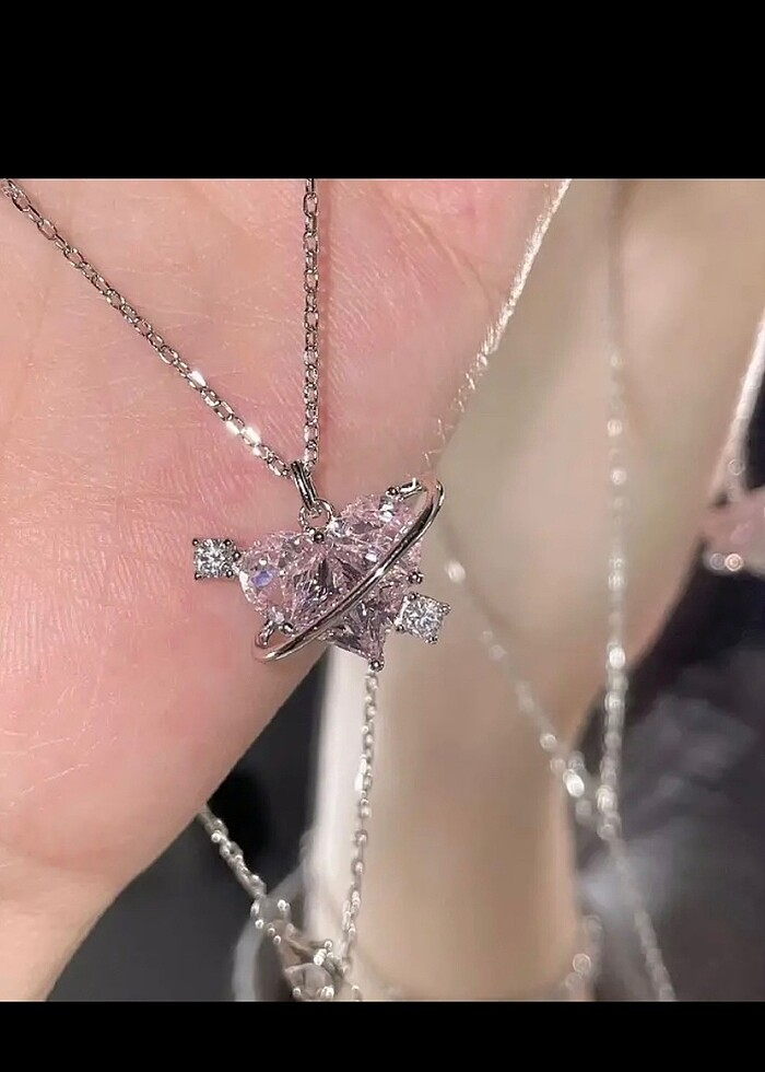 sheinside pembe kalpli taşlı kolye
