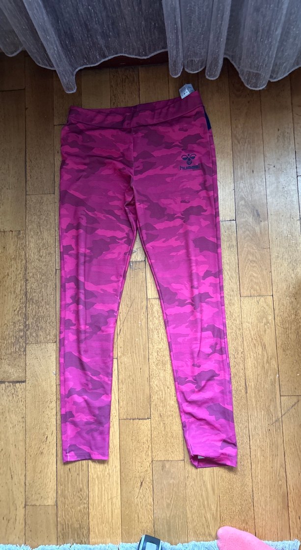 Spor ve günlük kullanıma uygun, elastik bel bantlı, koyu pembe kamuflaj desenli, vücuda oturan tayt. ♀️