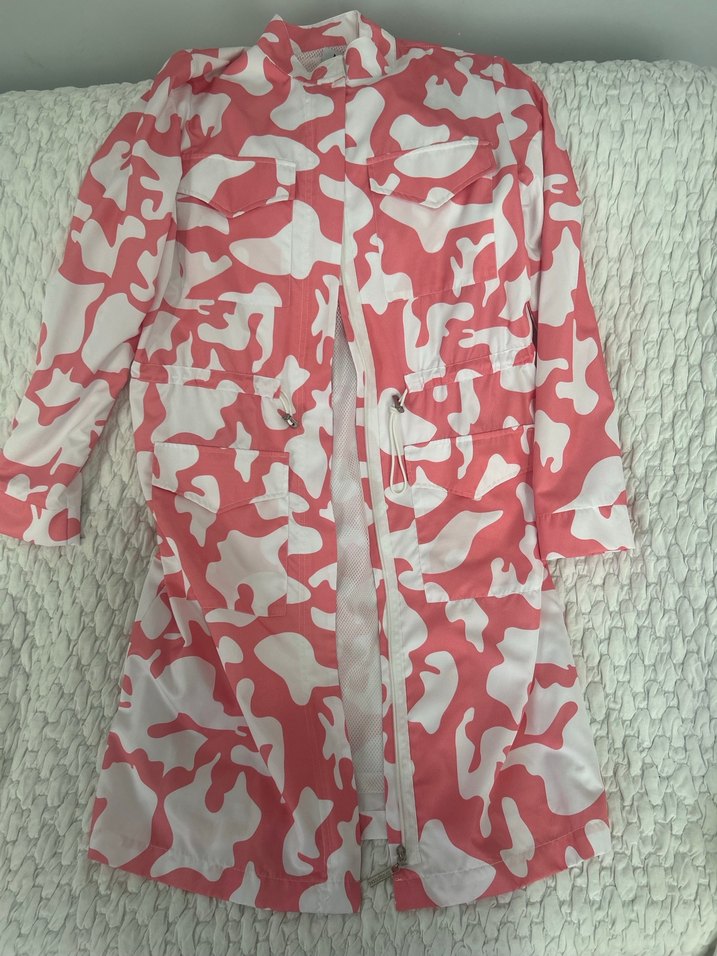 Pembe Kamuflaj Desenli uzun trenckot yagmurluk