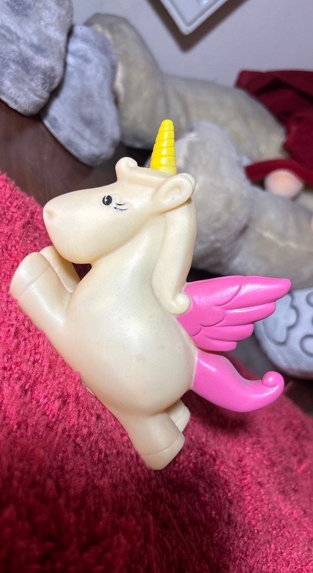 Sarı boynuzlu, pembe kanatlı pastel renklerde gece lambası pili içinde mevcut değildir.