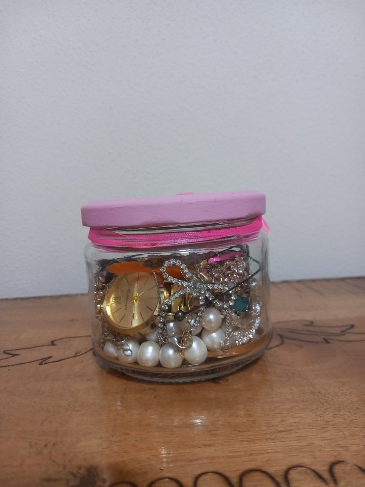 Pembe Kapaklı Renkli Takı Kavanozu