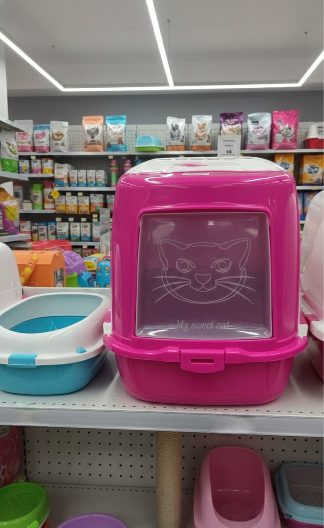 Pembe Kapalı Kedi Tuvaleti Kabı
