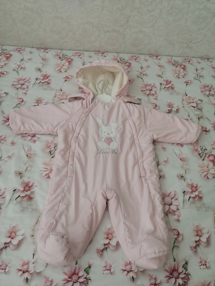 Pembe kapüşonlu bebek kız tulumu, kürk detaylı ve nakışlı desenlidir. Soğuk havalar için tam koruma sağlar. ❄️