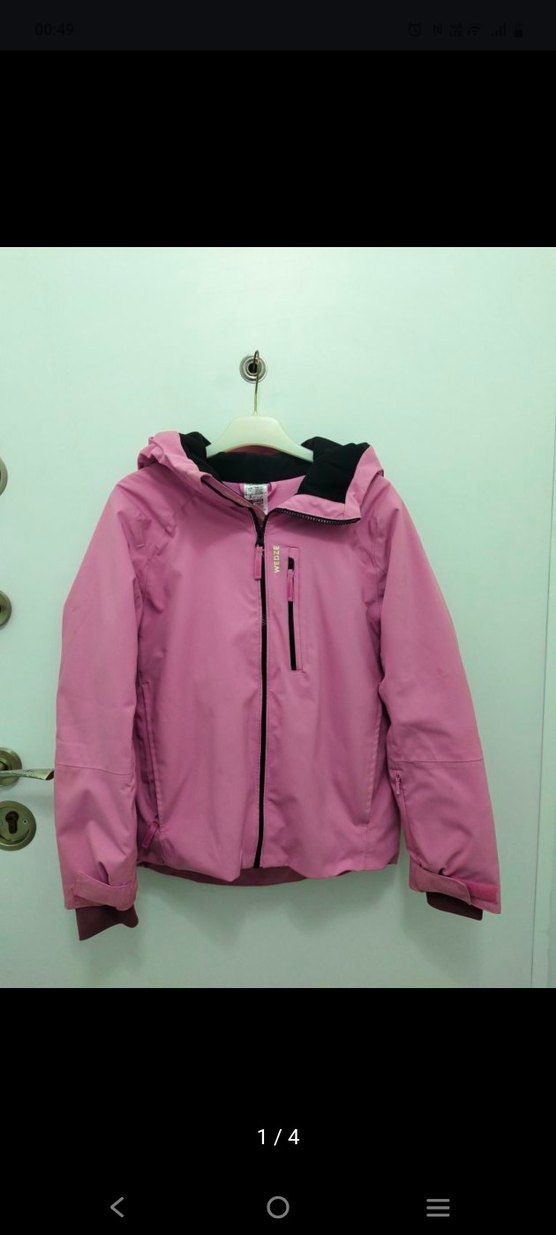 Pembe renkli, kapüşonlu kadın ceket, yüksek yakalı ve uzun kollu. Fermuarlı, salaş kesim ve renkli sokak stili, dış mekan kullanımı için uygun.1 sezon kayakta giyildi yıkaması yapılmadı kol kısmında resimde çekilmiştir