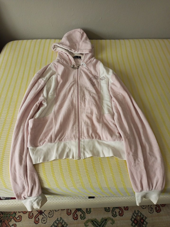 Pastel pembe renkte, kapüşonlu ve fermuarlı, uzun kollu, yumuşak ve sıcak dokulu kadın ceketi. Günlük kullanım için uygundur.