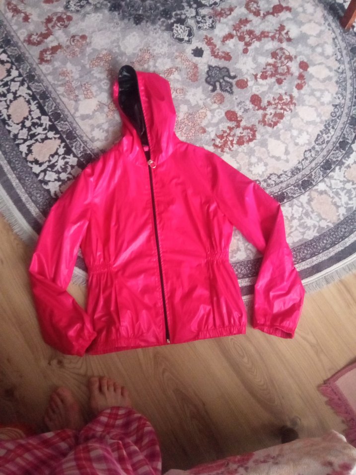 Pembe Kapüşonlu Fermuarlı Kadın yağmurluk