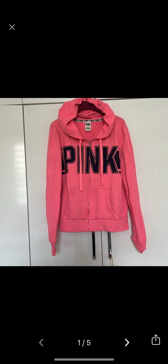 Koyu pembe renkte, fermuarlı ve kapüşonlu, uzun kollu, vücuda oturan sweatshirt. Önünde "PINK" baskısı bulunur, spor ve günlük kullanıma uygundur.