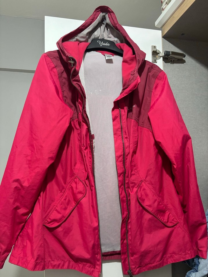 Pembe parlak renkte, kapüşonlu ve fermuarlı uzun kollu kadın ceket. Rahat kesimi ve sıcak tutan dokusuyla dış mekan kullanımı için uygundur. Yağmurluktur sayılı kullanıldı