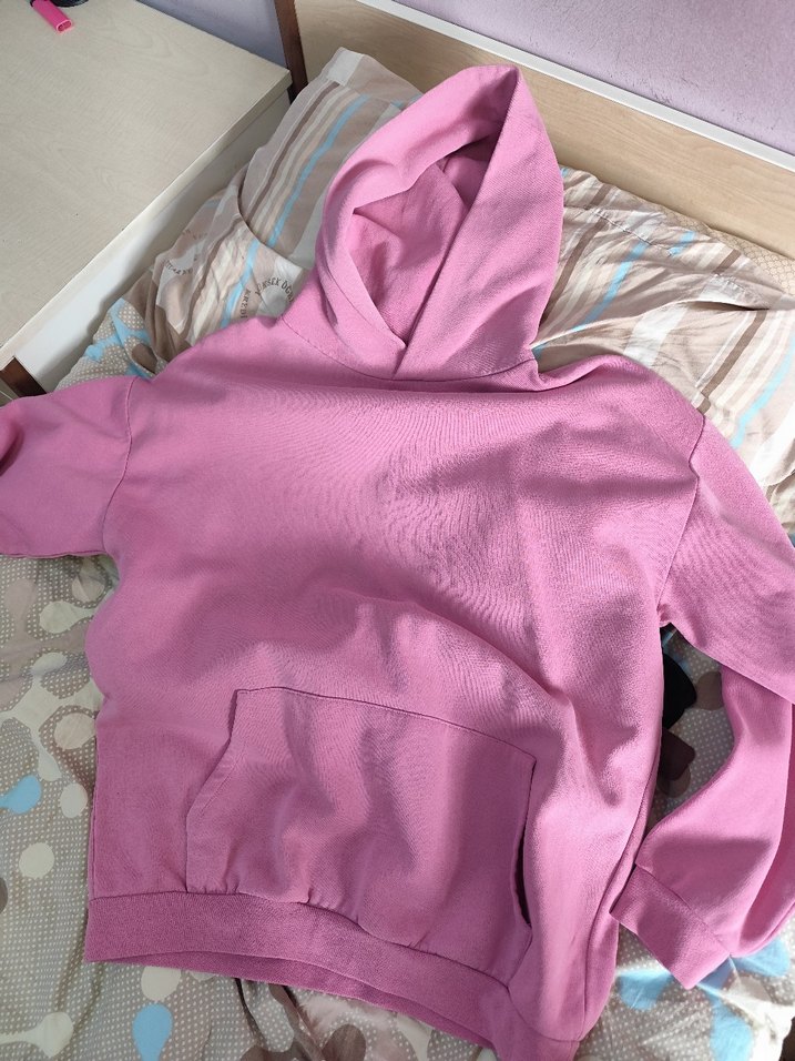 Kadınlar için kapüşonlu, uzun kollu, yumuşak ve sıcak kumaştan üretilmiş pastel pembe sweatshirt. Rahat kesimi ve normal uzunluğu ile günlük kullanım için uygundur.
