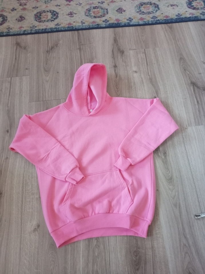 Pembe kapüşonlu sweatshirt, uzun kollu ve bol kesimdir. Yumuşak ve sıcak kumaştan üretilmiş olup, sade desensiz tasarıma sahiptir.