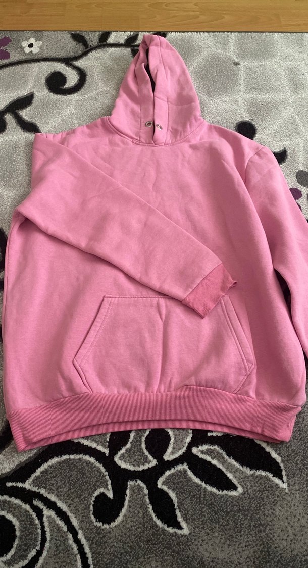 Pembe kapüşonlu kadın sweatshirt, bol kesim ve uzun kolludur. Yumuşak, sıcak kumaştan yapılmış, günlük kullanım için rahat ve şık bir tercihtir.