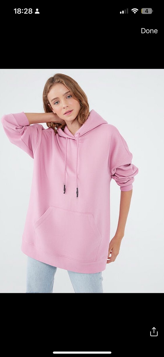 Pastel pembe renkte, kapüşonlu ve bol kesim sweatshirt. Uzun kollu, yumuşak ve sıcak kumaştan, rahat günlük kullanıma uygun.