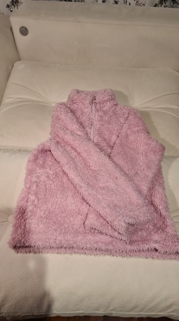 Pembe uzun kollu, kapüşonlu, bol kesim ve orta boy uzunlukta, yumuşak ve sıcak peluş kumaştan yapılmış kadın sweatshirtü. Günlük kullanım için sade ve rahat tasarım.