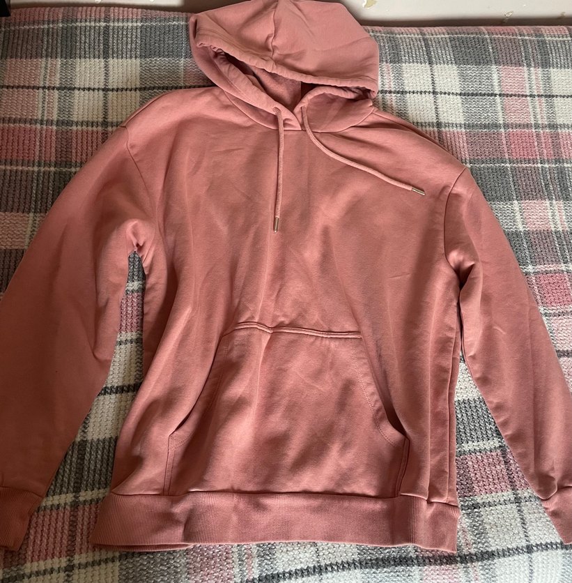 Bu pastel pembe sweatshirt, rahat kesim, yuvarlak yaka ve uzun kolludur. Yumuşak ve sıcak kumaştan üretilmiş, ön kanguru cebine ve bağcıklı kapüşona sahiptir.