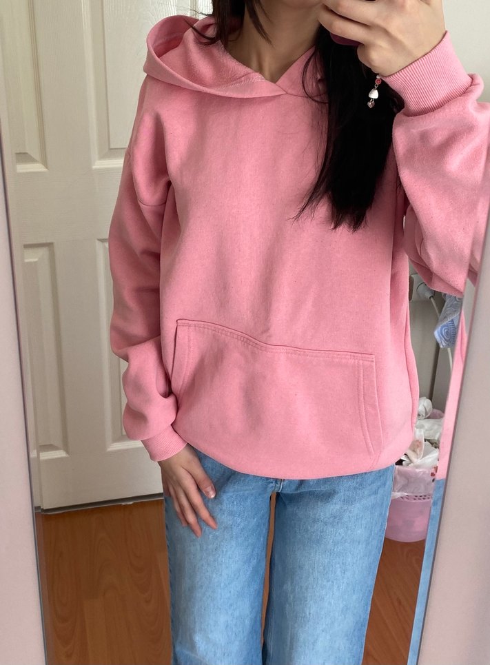 Pembe Kapüşonlu Rahat Kesim Sweatshirt