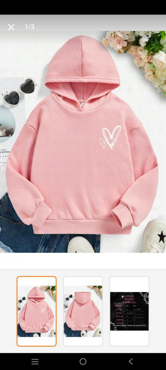 Pastel pembe kapüşonlu sweatshirt, uzun kollu ve rahat kesimdir. Yumuşak ve sıcak kumaştan üretilmiş, çift kalp baskılı kısa uzunluktadır.