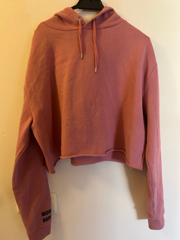 Pastel pembe renkte, uzun kollu ve yuvarlak yaka salaş kesim sweatshirt. Yumuşak ve sıcak kumaştan, günlük kullanıma uygun rahat model.