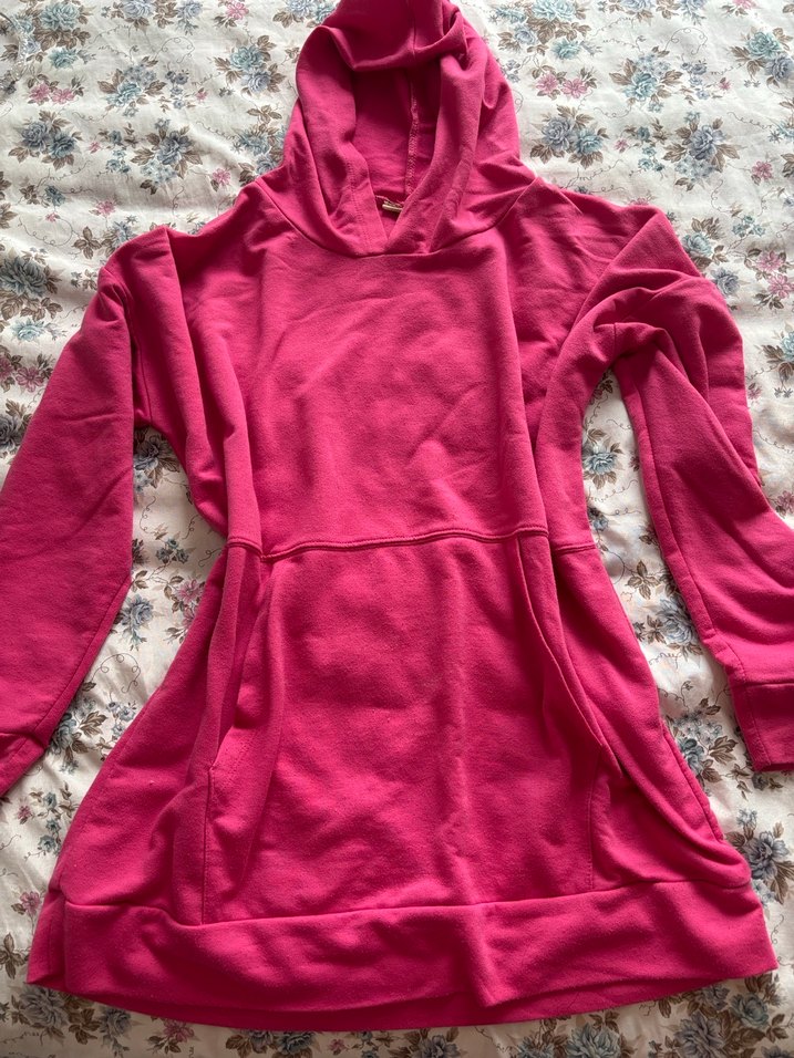 Pembe Kapüşonlu Uzun Kollu Sweatshirt