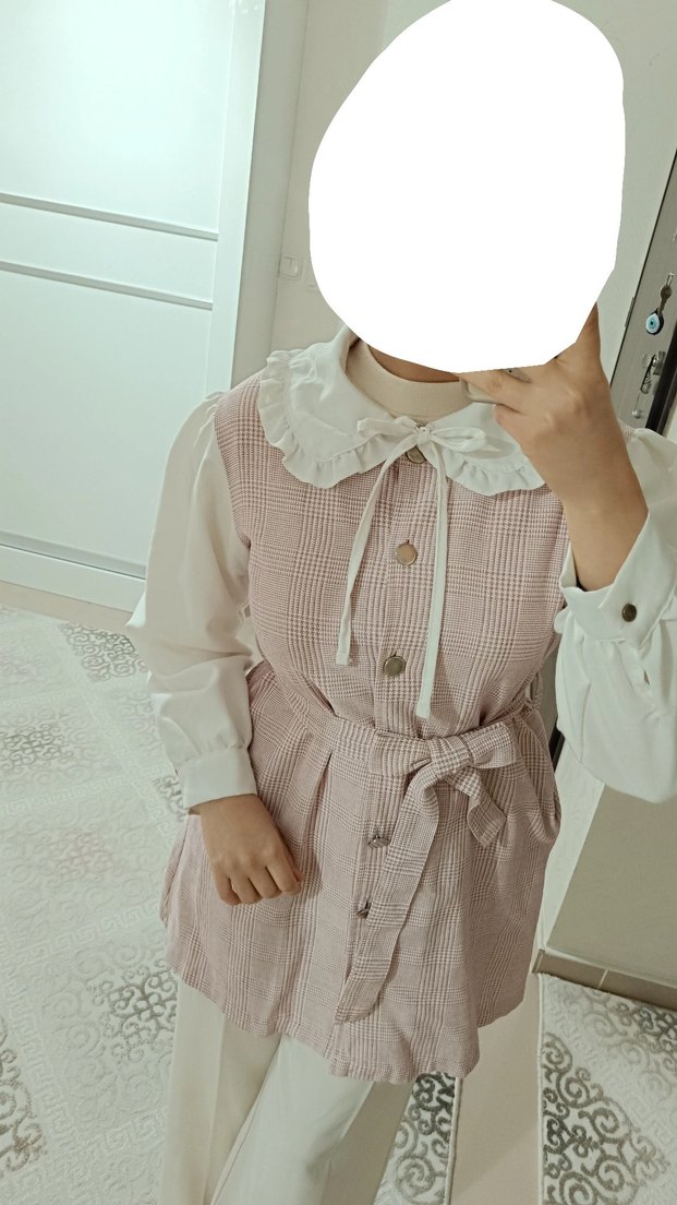 Merve Gültekin marka Pamuk kumaştan, düğmeli, uzun kollu, yakalı, pembe kareli gömlek