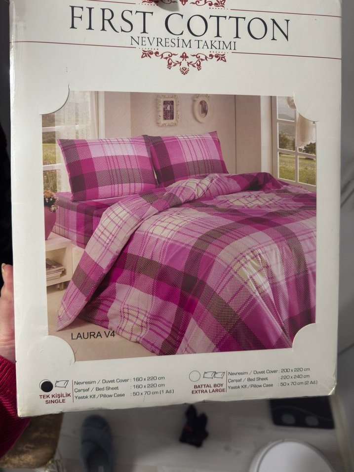 First Cotton markalı, açık pembe kareli desene sahip nevresim takımı. Tek kişilik, 160x220 cm nevresim ve 50x70 cm yastık kılıfı içerir. ️