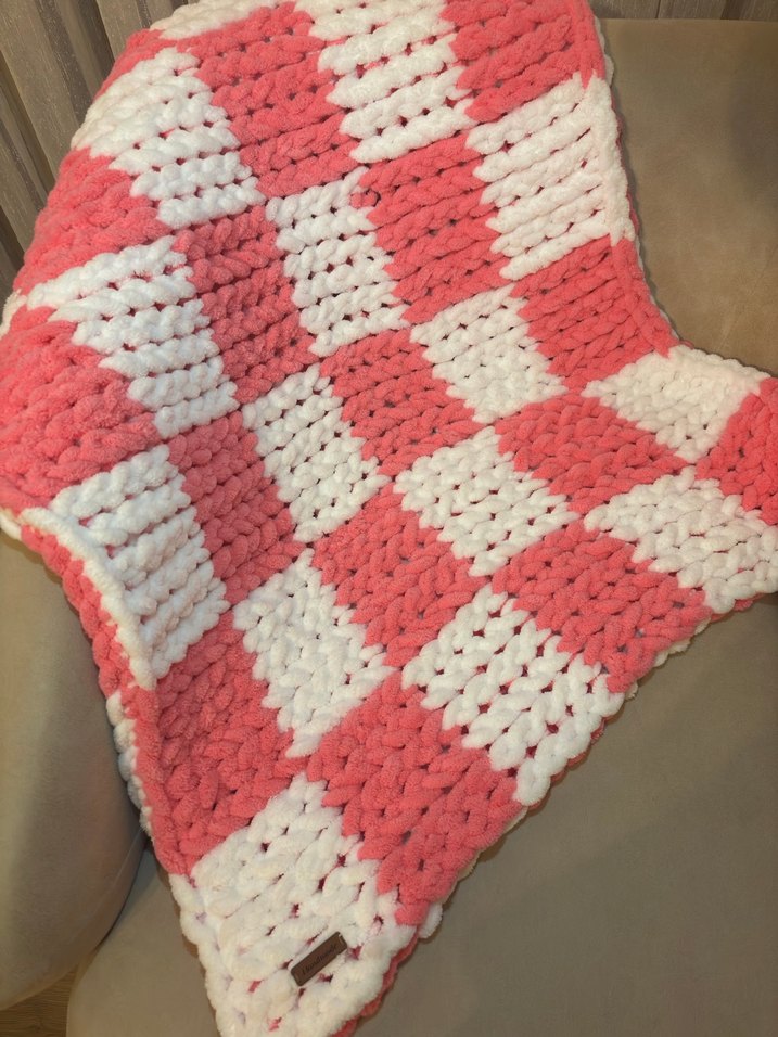 Pembe Kareli Örgü Çocuk Battaniyesi