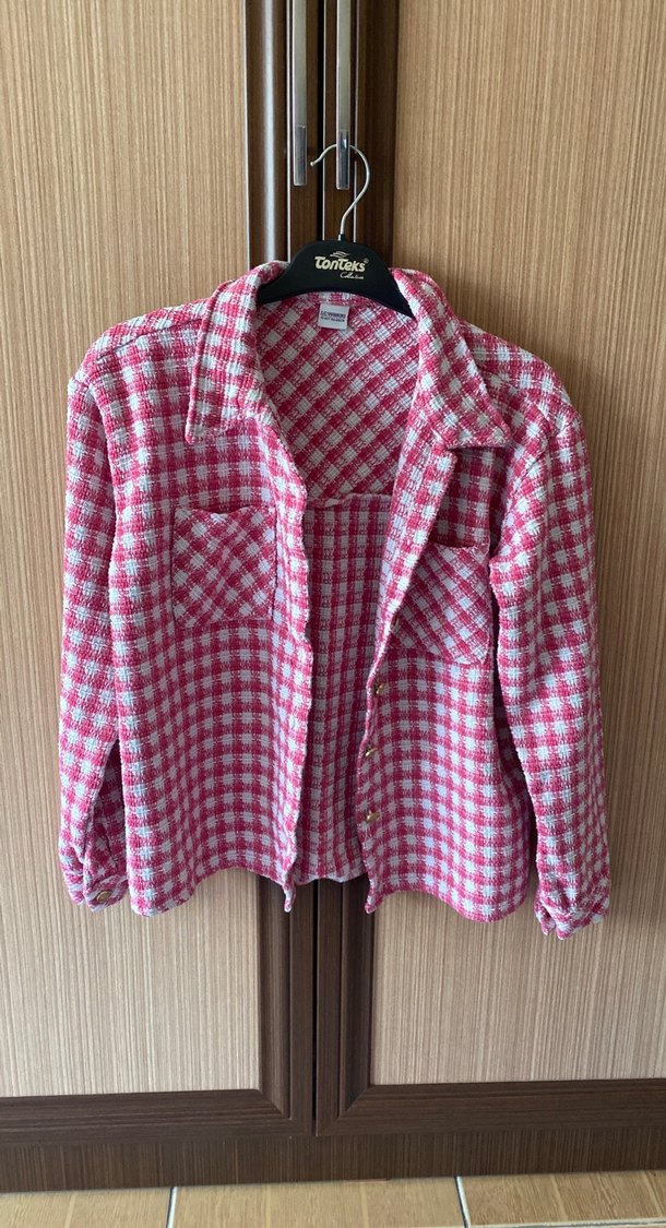 Pembe kareli, uzun kollu kız gömleği, çıtçıtlı ve kesik yaka detaylıdır. Rahat kesimli, sokak stili için uygundur. Yumuşak sentetik kumaştan üretilmiştir.