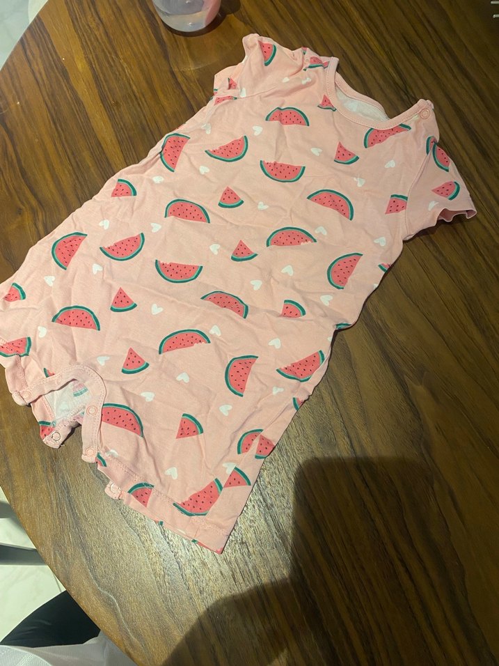 Pembe Karpuz Desenli Kız Bebek Tulum
