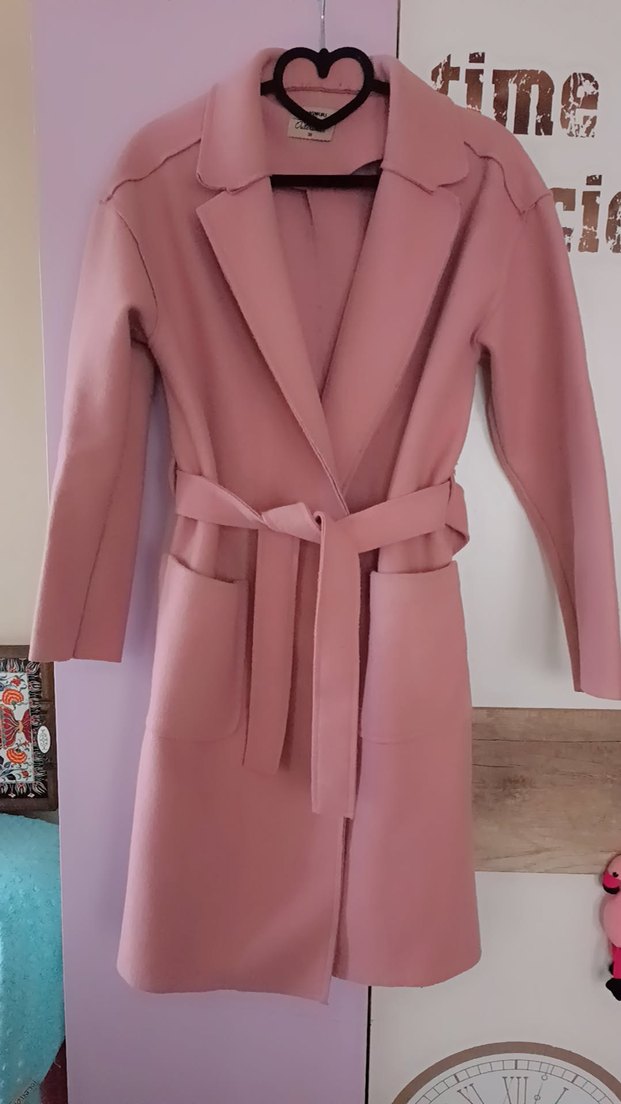 Pembe kaşe cepli kaban, 38 beden.kuşaklı ve normal kesim uzun kadın kaban. günlük kullanıma uygundur. LCW