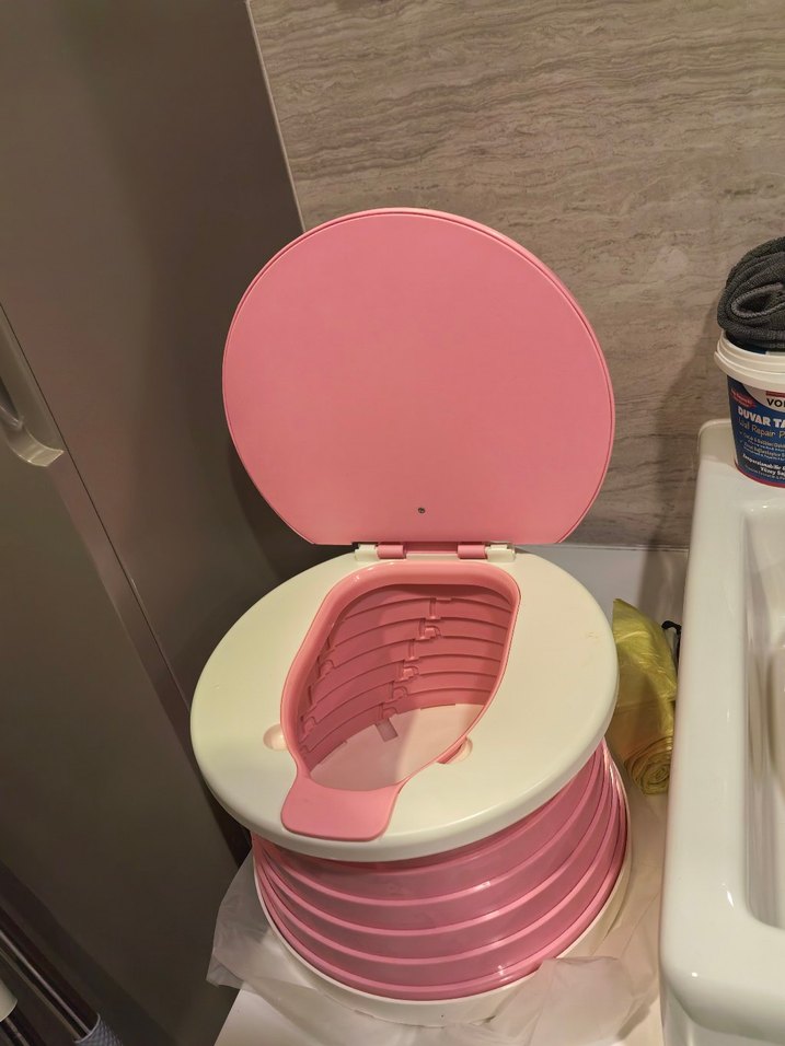 Pastel pembe plastikten yapılmış, katlanabilir ve tokalı bebek lazımlığıdır. Kullanımı ve saklaması pratiktir.