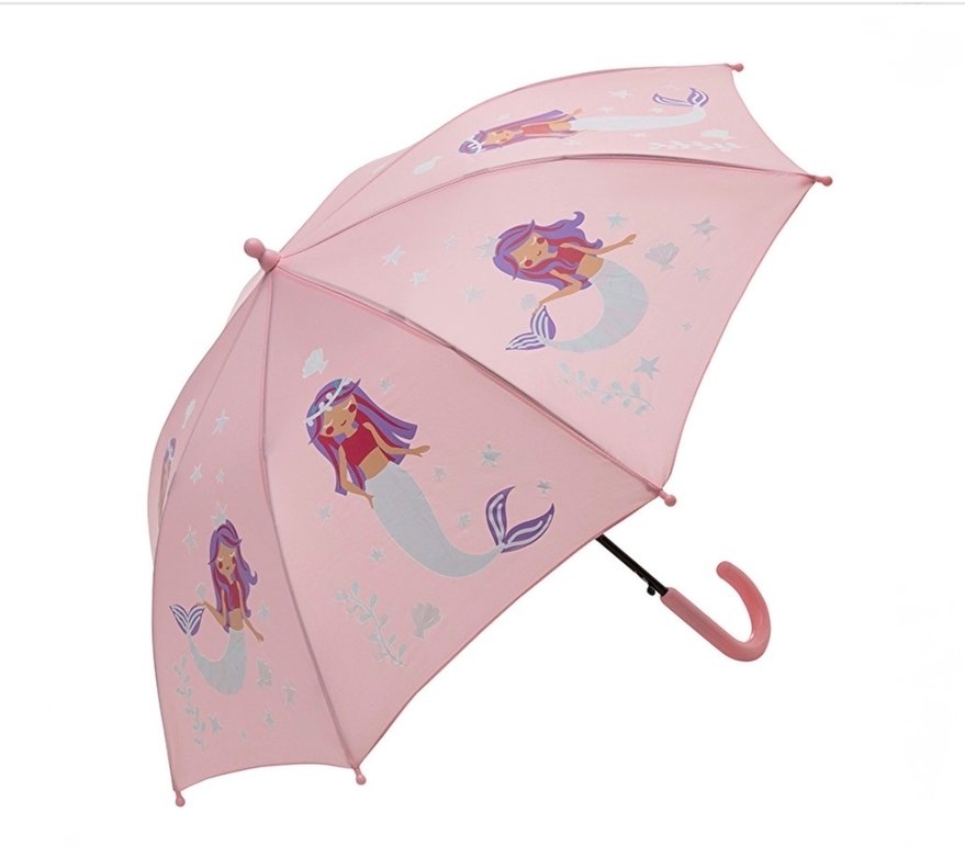 Pastel pembe renkte katlı tasarıma sahip cocuk şemsiye , klasik zarafeti pop kültür dokunuşuyla birleştiriyor.