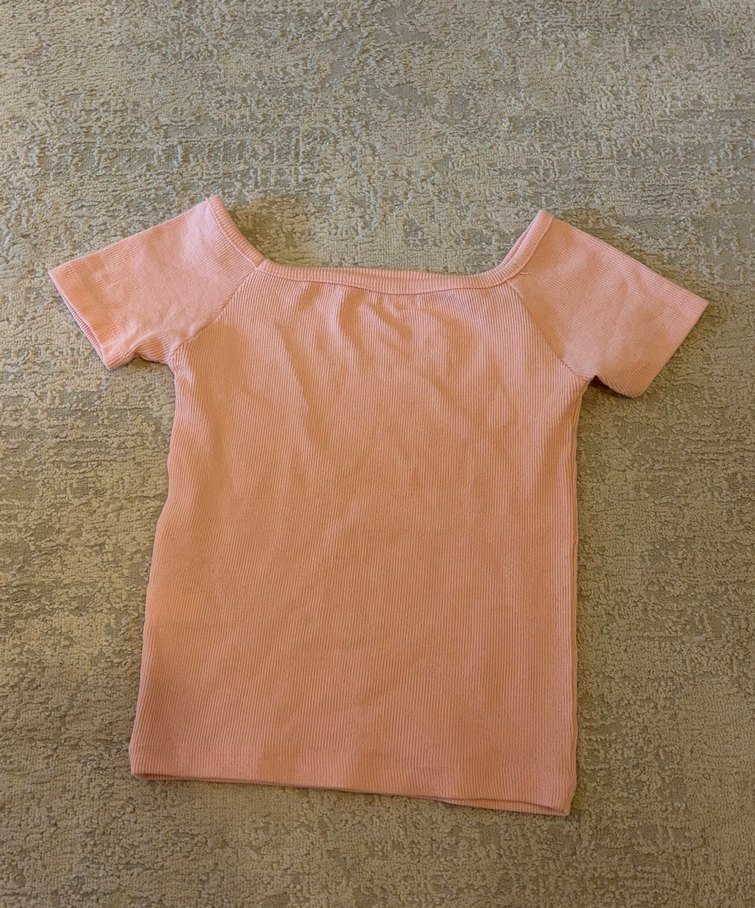 kayık yaka ve kısa kollu, fitted kesim pembe tişört. Yumuşak sentetik kumaştan, sade ve şık sokak stili için uygun.