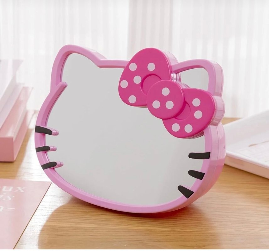 Canlı pembe renkte, puantiyeli fiyonk detaylı kedi figürlü dekoratif ayna, odanıza neşeli bir dokunuş katar.