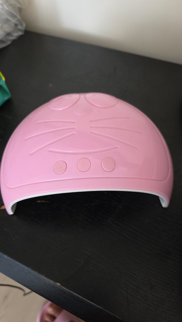 Pembe renkte, kedi yüzü detaylı ve üç butonlu kalıcı oje kurutma cihazı
