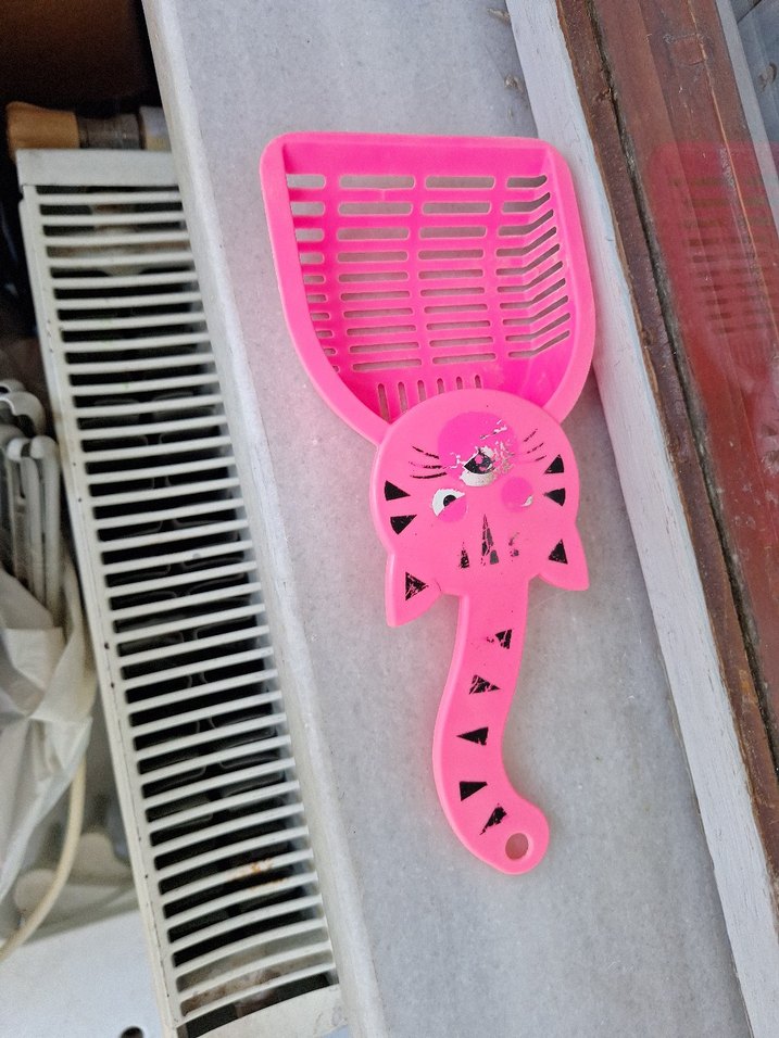 Kolu fiyonk desenli, kolay temizleme için renkli pembe kedi kumu küreği.