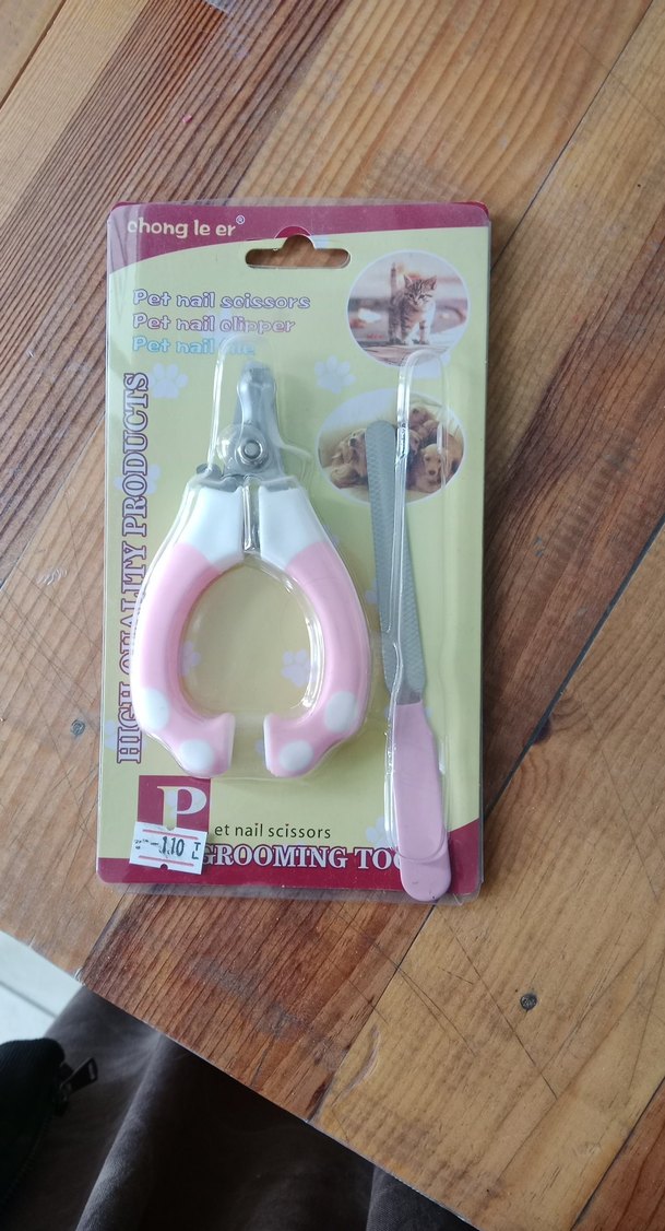 Pastel pembe renkte kedi tırnak makası ve törpü seti, rahat tutuşlu saplara ve ince metal törpüye sahiptir.