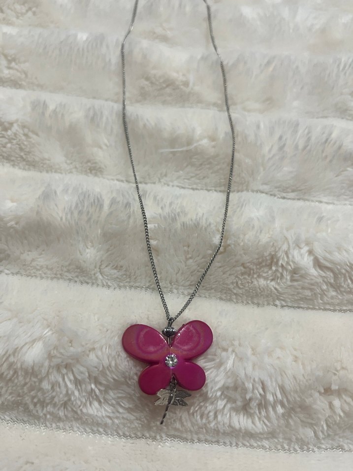 Pembe kelebek kolye