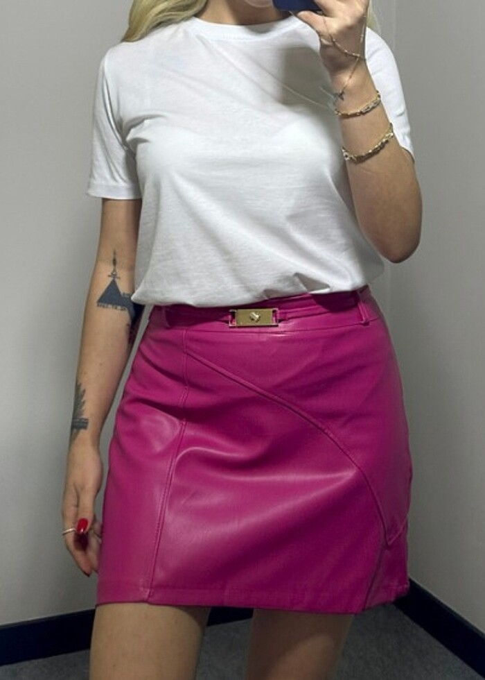 Pembe Kemerli Deri Etek