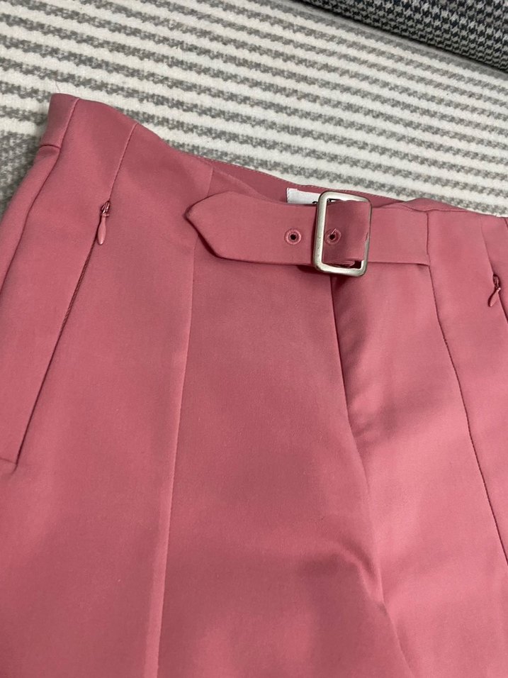 Pembe Kemerli Kısa Kadın Kumaş Pantolon