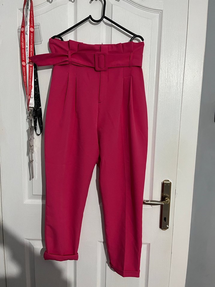 Pembe Kemerli Koyu Pembe Kadın Kumaş Pantolon