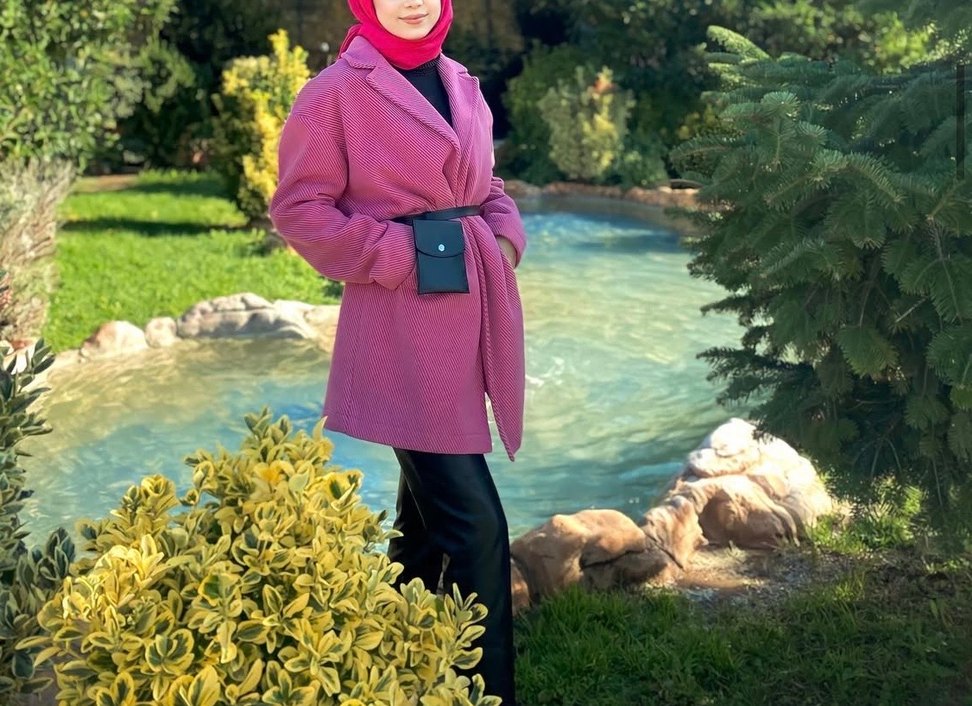Pembe renkte, kemerli midi uzunlukta, yumuşak ve sıcak kumaştan yapılmış kadın kabanı. Notlu yaka ve uzun kolludur, günlük sokak stiline uygundur.