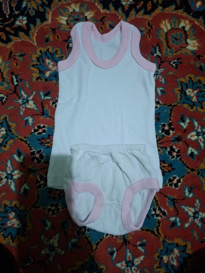 Yumuşak kumaştan, pembe kenarlı beyaz çocuk atlet külot. Rahat kullanım sağlar. kullanılmamıştır