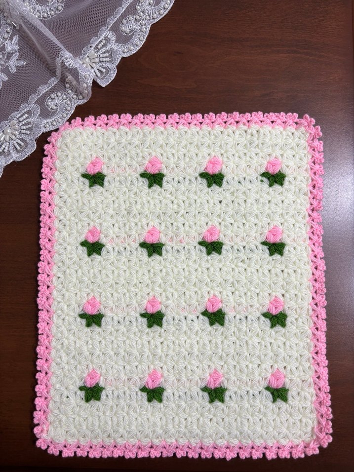 İSTENİLEN RENKTE SİPARİŞ ALINIR.Pembe çiçek desenleri ve pembe kenarı olan renkli, tığ işi banyo süngeri, yumuşak bir doku sunar.