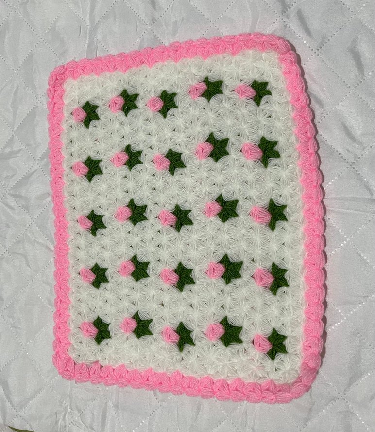 Pembe Kenarlı çiçek motifi Örgü Lif
