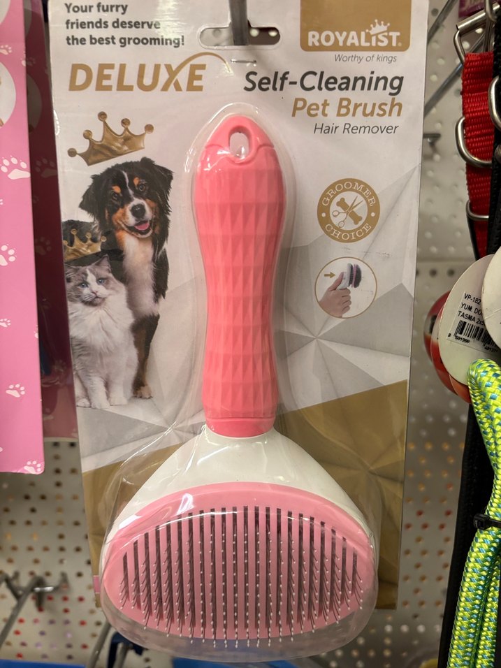 Pastel pembe renkte, kendini temizleyen bu deluxe evcil hayvan fırçası tüyleri etkili şekilde toplar, kolay bakım sağlar.