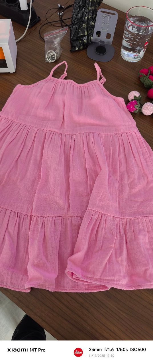 Pembe keten kumaştan, salaş kesim, askılı ve fırfırlı kız elbisesi. Boğaz kesimi ve pastel tonları ile bohem tarzı sunar.