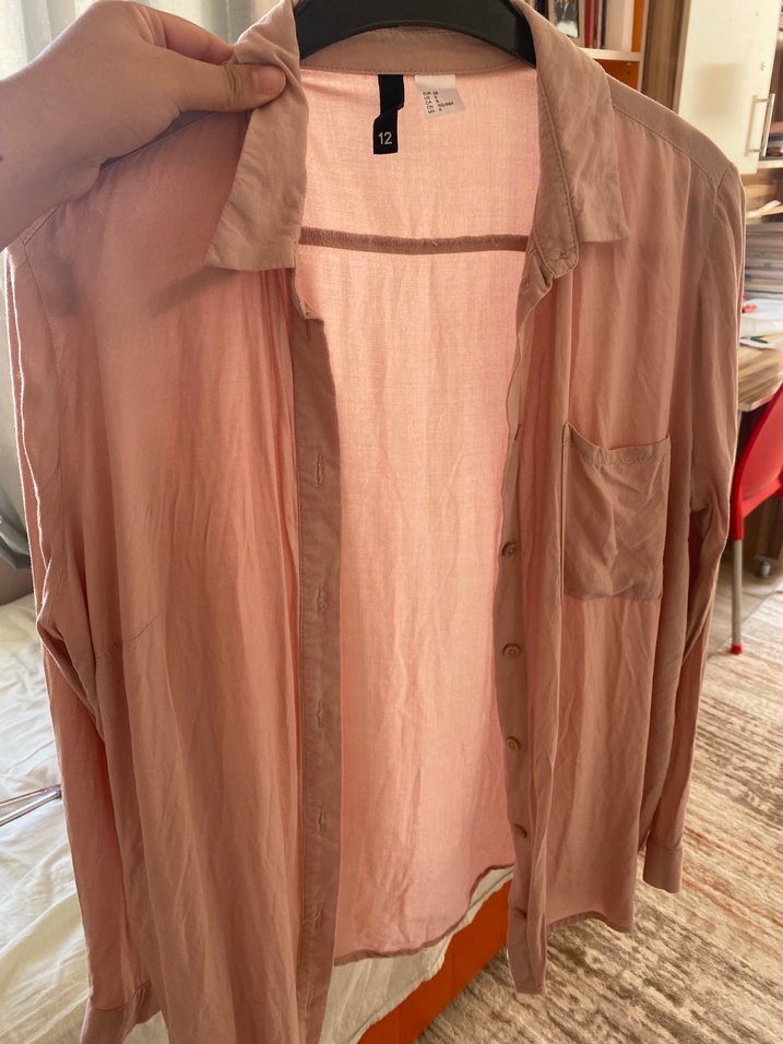 Pembe pastel keten gömlek, bol kesim ve V yaka detaylıdır. Uzun kollu, düğmeli ve gündelik bohem tarzda bir üründür.