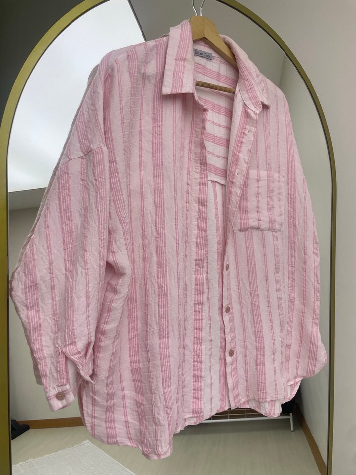 Pembe Keten Düğmeli Bol Kesim Gömlek