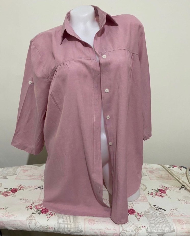 Pembe Keten Düğmeli Salaş Gömlek
